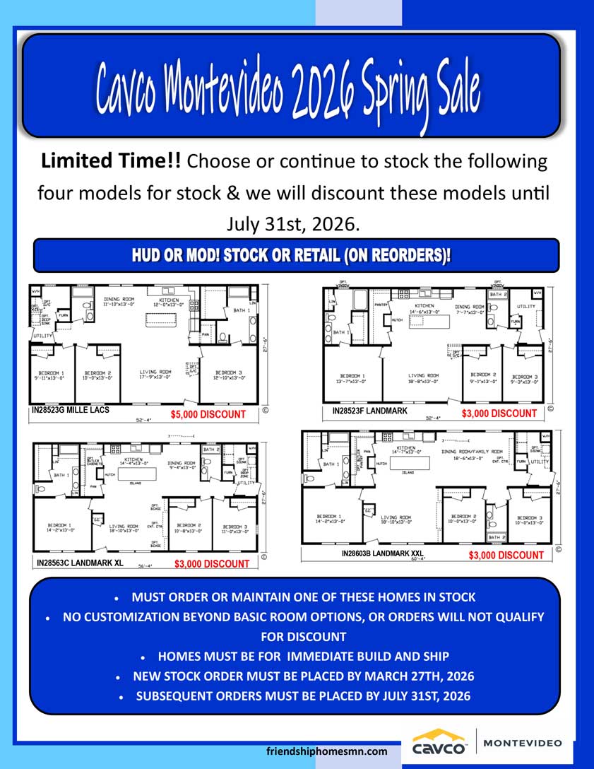 Life Style Homes has been providing most Minnesota with modular and manufactured housing since 1977. We are proud to offer modular homes by Friendship Homes of MN, and manufactured homes by Friendship Homes of MN. Our inventory of affordable modular homes and manufactured homes is extensive and diverse, we feature many floor plans and options.